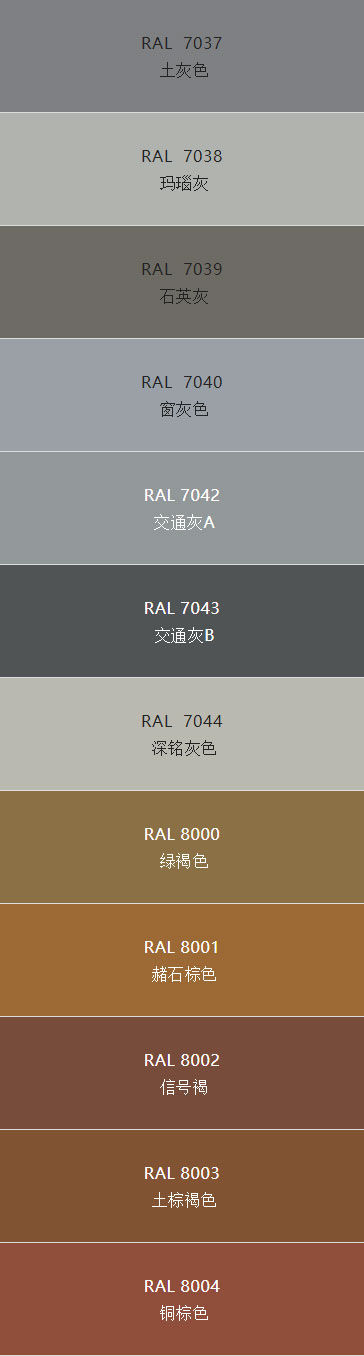 什么是RAL色卡?自從1927年,當(dāng)RAL涉入色彩時,就創(chuàng)建了一種統(tǒng)一的語言,為豐富多彩的顏色建立標(biāo)準(zhǔn)統(tǒng)計(jì)和命名,這些標(biāo)準(zhǔn)在世界范圍內(nèi)被廣泛的理解和應(yīng)用。 4位數(shù)的RAL顏色作為顏色標(biāo)準(zhǔn)已達(dá)70年之久,至今為止已發(fā)展到200多種。無光澤的顏色基礎(chǔ)色卡為RAL-840HR,有光澤的為841-GL,這些顏色基本色塊滿足了大范圍的應(yīng)用,已被許多重要公司及研究機(jī)構(gòu)所使用。RAL-840HR及RAL-841GL 顏色注冊都作為顏色樣本應(yīng)用于設(shè)計(jì)中,同時它們也包括了安全和信號色符合DIN及ISO規(guī)定的顏色要求。